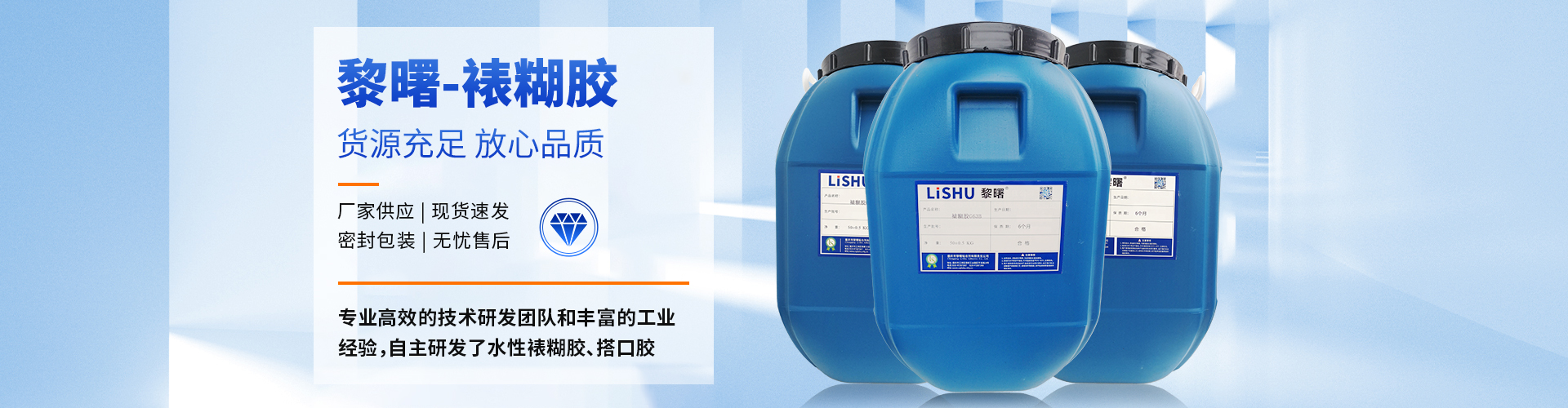 重慶市黎曙粘合劑有限責任公司創始于2008年,是重慶專業從事PVC粘合劑的生產廠家之一,是重慶一家取得有生產許可資質的廠家。公司占地面積6000平方米,擁有總資產2000余萬元,技術力量雄厚,擁有高級技術研發團隊。現具備年生產量6000噸PVC粘合劑生產線及年生產量8000噸水性裱糊膠、黃膠、搭口膠生產線。